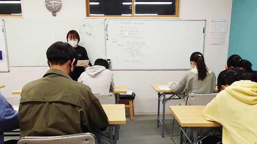 A.同じ目標に向かう仲間と切磋琢磨し、目標に一直線に向かえる力が増す集団指導の良さです。1対3などの個別指導がいいのではないかと思われる方も多いと思いますが、個別指導は放置される時間が長く、実は無駄が多いいもの。私たちは集団授業の中で一人ひとりに合わせて学習を導いていきますのでご安心ください。